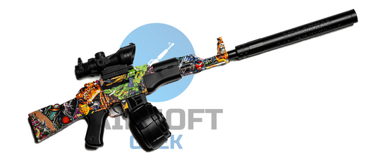 Splatter Mini AK47 Gel Blaster - Dødningehoved Grafiti