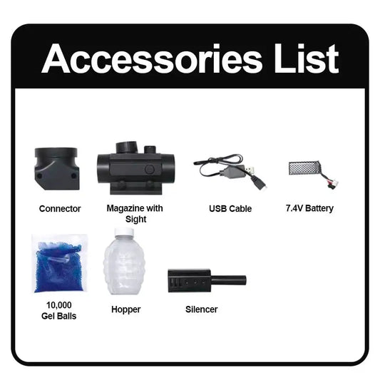 - Sikkerhed i Fokus: Gel blaster våben bruger gel kugler, der opløses ved kontakt, hvilket gør dem sikre for både børn og voksne.