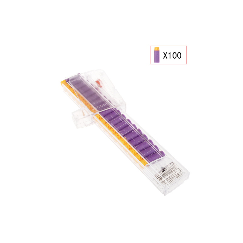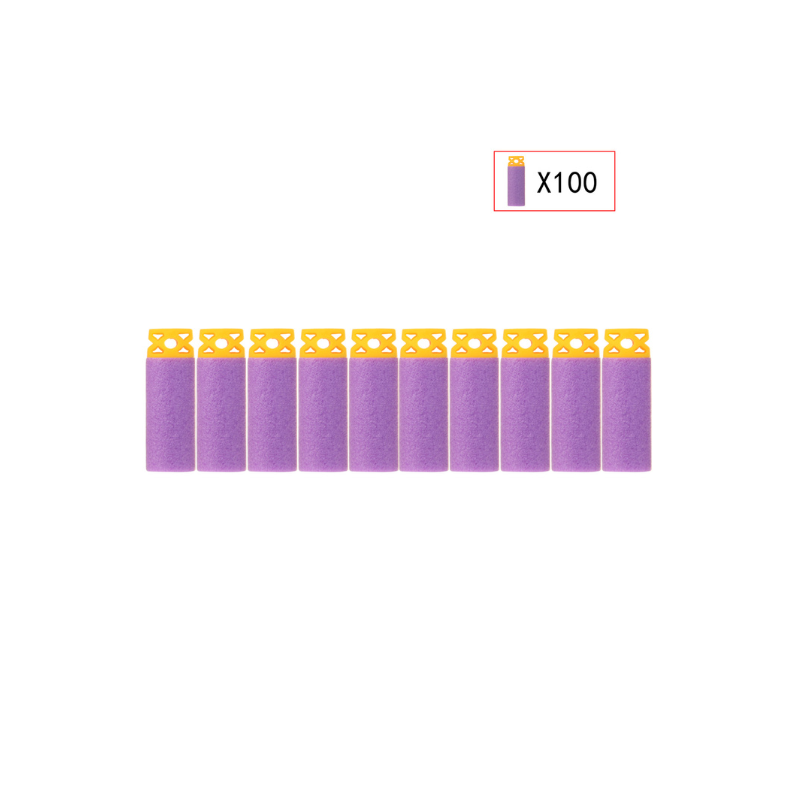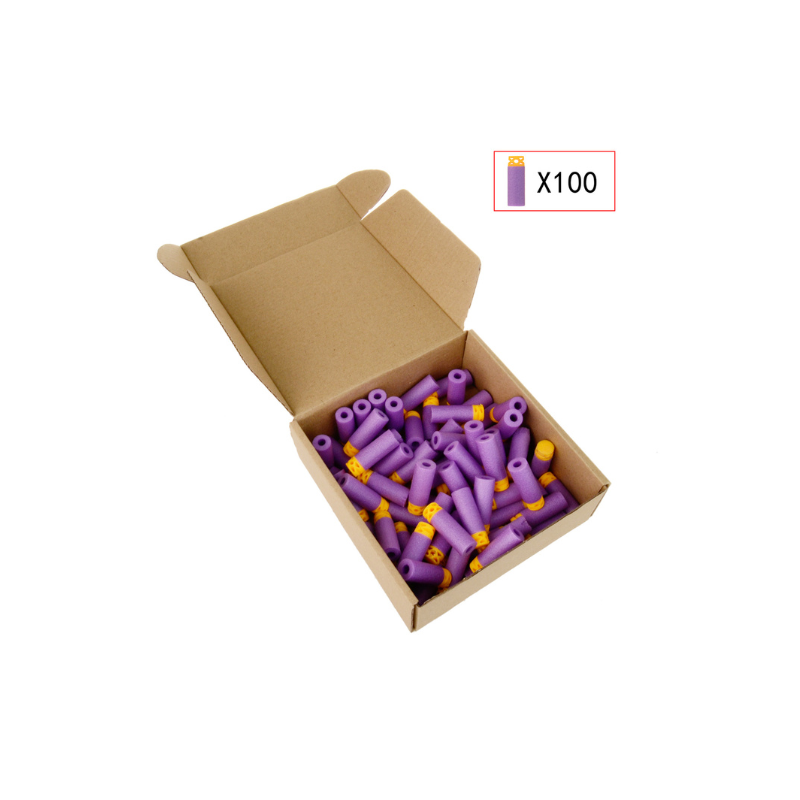Det lette og ensartede design gør dem velegnede til både leg og spil, hvor der stilles krav til præcision og pålidelighed. Pakken indeholder 100 stk. short darts i farven lilla, klar til at fylde dine magasiner.