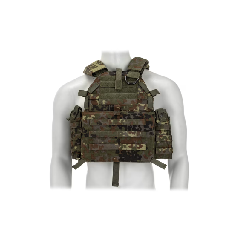 Invader Gear 6094A-RS Plate Carrier er en let og alsidig low-profile plate carrier designet til brugere, der ønsker maksimal funktionalitet kombineret med lav vægt. Vesten er udviklet til ballistiske plader og har en stor bæreflade takket være det fulde MOLLE-system, som giver rig mulighed for montering af lommer og taktisk udstyr.