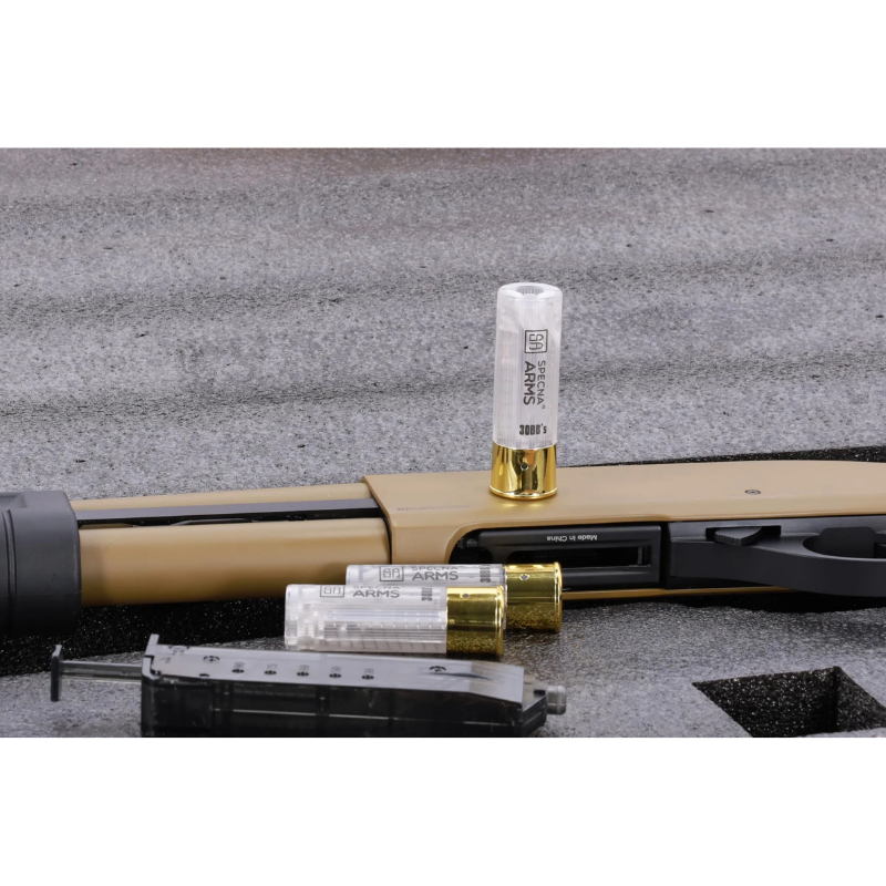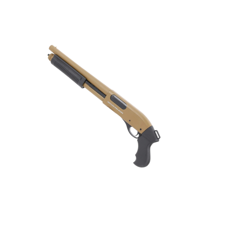 Metalbygning, ergonomisk pistolgreb med indbygget gasfyldningsventil og pump-handling med shells giver en autentisk, taktisk oplevelse hver runde. Våbnet tilbyder valg mellem 3 eller 6 BB pr. skud, så du kan tilpasse ildkraften efter situationen.