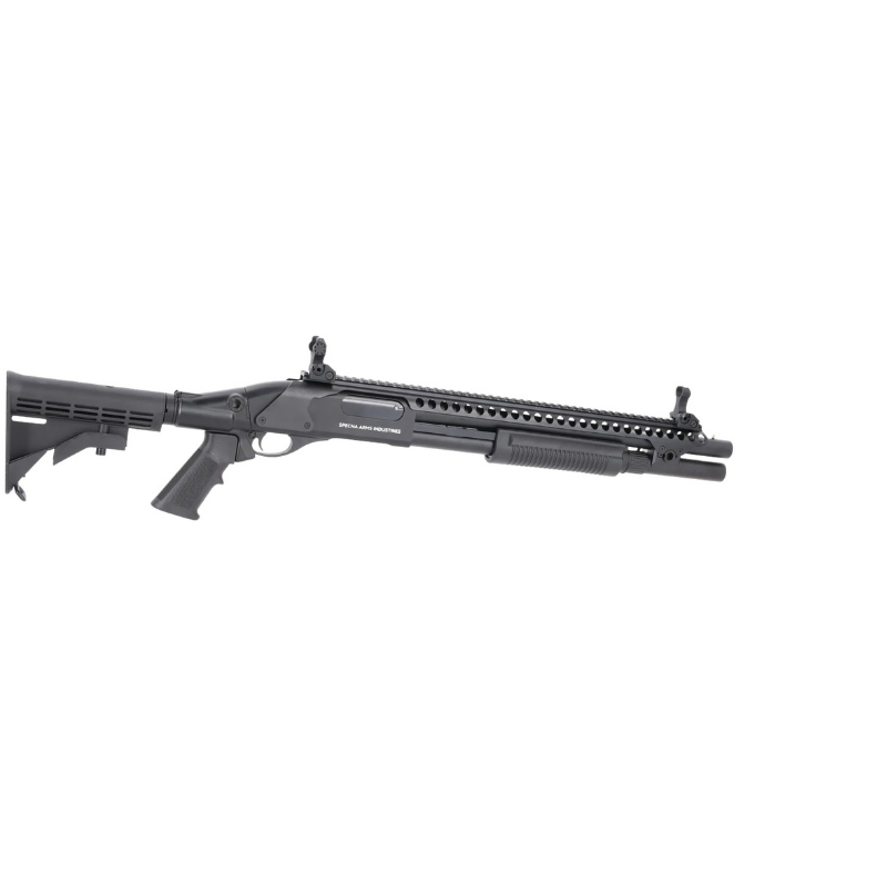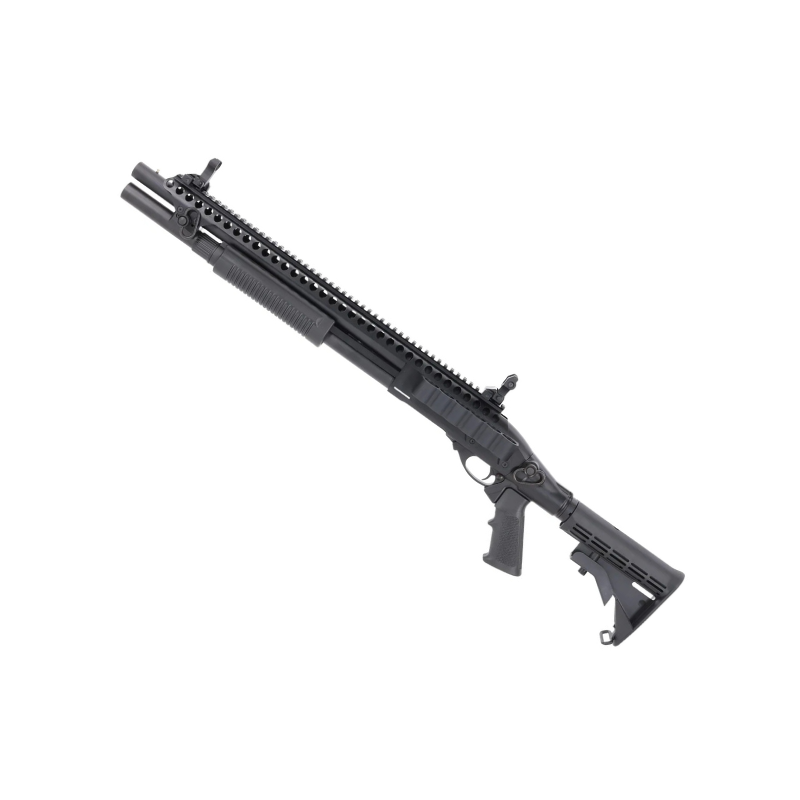 er en solid, gasdrevet pump-shotgun designet til tætte, taktiske runder. Den kombinerer metalbygning med taktiske løsninger som integreret shells-loader og Picatinny-rail, så du hurtigt kan genopfylde og montere optik eller tilbehør i feltet. Perfekt til spillere, der vil have et robust, funktionelt våben til CQB.