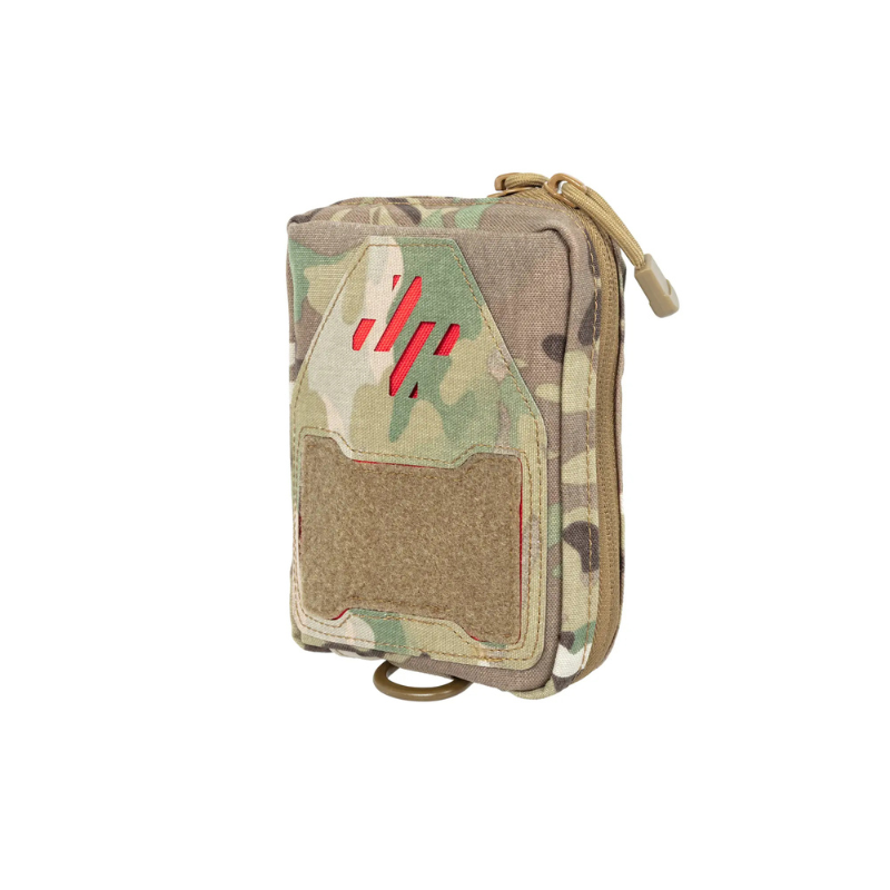 Et lille, velorganiseret first aid kit bygget i slidstærkt CORUND™ 500D-materiale. Kittet åbner helt op med to-vejs lynlås for hurtig adgang, og indersiden har elastiske bånd og fastgørelsesstropper til at holde elementerne ryddeligt på plads. Monteringsmulighederne (MOLLE) og den påsyede medicinske markering gør det enkelt at placere kittet hvor du har brug for det