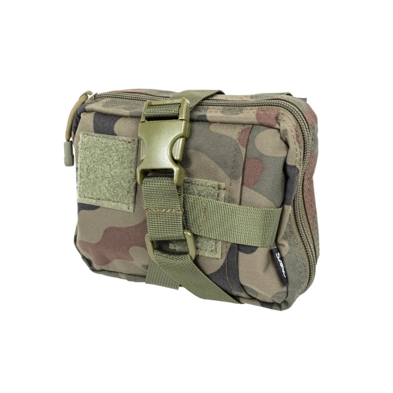 Kompakt, taktisk førstehjælpskit i Wz. 93 Panther Forest — designet til hurtig adgang og nem montering på vest eller bælte under spil og træning.