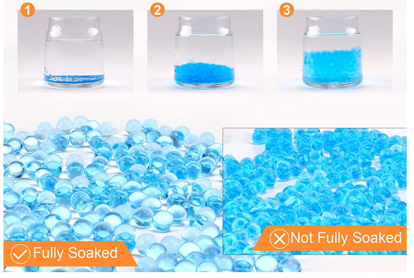 Disse Gel blasters skyder med små Gel kugler der skal puttes i vand i MINIMUM dagen før man skal bruge dem, til de har suget nok vand til at blive cirka 7 til 8 mm store.