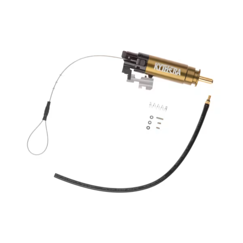 Systemet passer i en standard V2 gearbox og kræver i de fleste tilfælde ingen modificering af gearbox-skallen. Driftstrykket ligger mellem 60 og 180 PSI, og med en 6,05 × 380 mm pibe kan Kythera levere en udgangshastighed på ca. 270–500 FPS med 0,20 g BB. Det gør Kythera til en yderst fleksibel løsning, som kan tilpasses både CQB, skovspil og milsim.