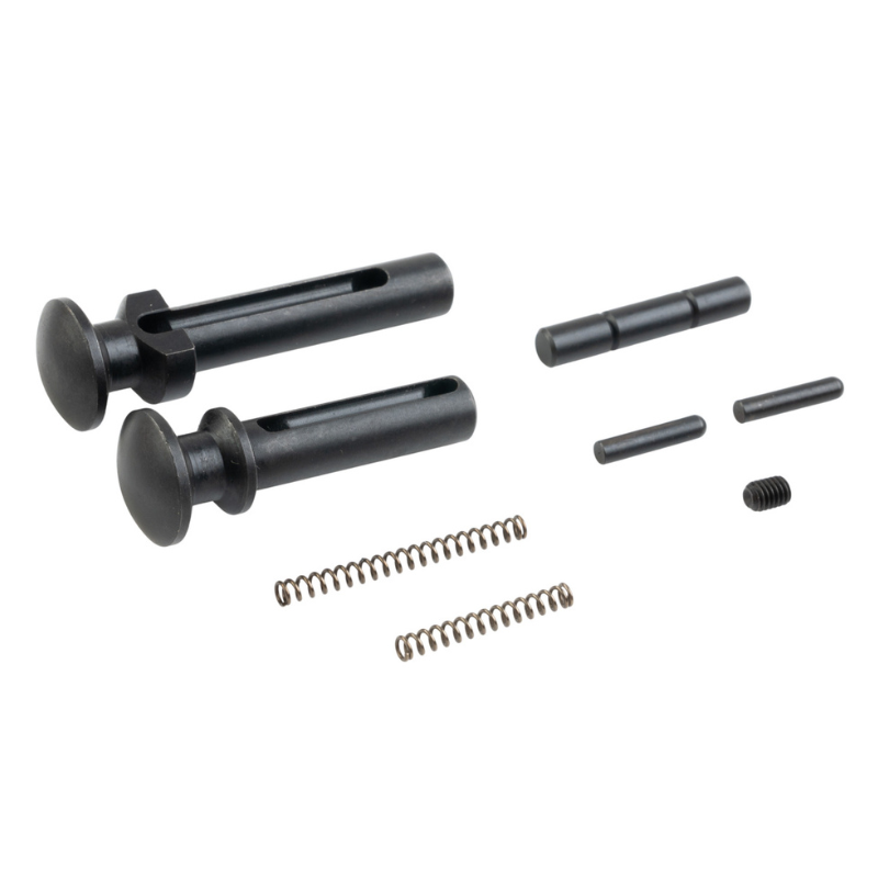T8 Takedown Pin-sættet er en praktisk opgradering til brugere af Tokyo Marui MWS GBB. Sættet er designet til at forlænge levetiden på rifledelets låsebolte (takedown-pins) takket være den robuste konstruktion i stål.
